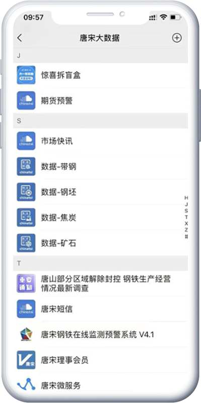 手机终端,核心数据,一键成图,钢坯数据,带钢数据,焦炭数据,铁矿石数据;唐宋信息产品重要的推送手段之一,具有随身、及时、方便等特点。